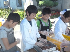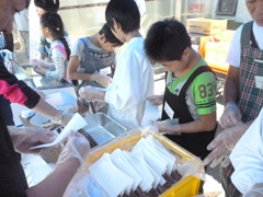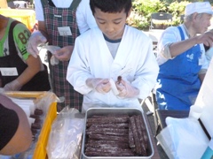 10月2日(日)、社会福祉法人桜が丘学園石川共生園の「共生祭」で5年生の希望者がボランティア活動をしました。係の方、担任の先生に指導を受けながら、「チュロス」と「アイスクリーム」の販売をしました。