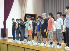 10月3日(月)、全校集会で10月6日(木)に行われる、地区小体連陸上大会の選手壮行会を行いました。選手全員の紹介、4年生からの激励の言葉、選手代表のあいさつなどがありました。選手の皆さんには、支えてくれた方々への感謝の気持ちを持って、これまでの練習の成果を発揮して頑張ってきてほしいと思います。