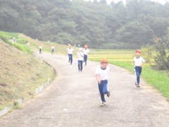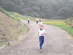 9月28日(水)、10月12日の校内マラソン大会に向けて、低学年の子どもたちが実際のコースを走りました。みんなたくさん汗をかきながら一生懸命走りました。