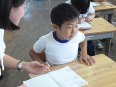 10月4日(火)、4年生で手話教室を行いました。講師には、福島県聴覚障害者協会の山中先生をお迎えしました。聴覚障害者の生活や意思の伝え方、基本的な手話(あいさつ)などについて分りやすく教えていただきました。