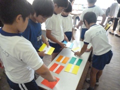 9月30日(金)、4年生で算数の研究授業を行いました。、「学び合う」活動では、みんなで、めあて達成に向けて、まさに試行錯誤しながら取組みました。