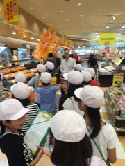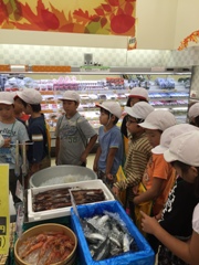 9月29日(木)、3年生が、社会科の学習で、町内のスーパーマーケットに行ってきました。お店の様々な工夫についてお話を聞いたり、実際に買いもの体験をしたりしました。とても勉強になりました。