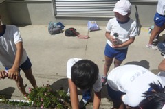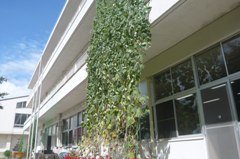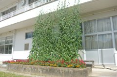 8月2日(火) 職員室、保健室前のグリーンカーテンとして育てている、「ヒョウタン」と「ゴーヤ」が大きく生長しています。