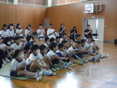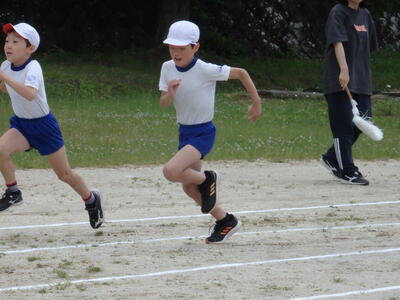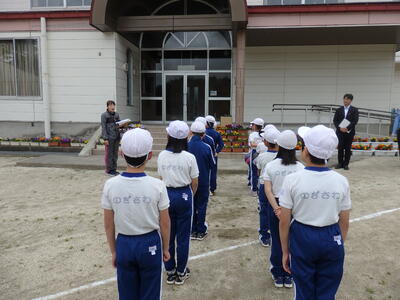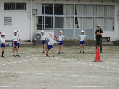 毎年行っている「新体力テスト」を実施しました。50m走やソフトボール投げを行い、走・投の力を測定しました。昨年度よりも記録が大幅に伸びている子がたくさんいました。この他に、立ち幅跳びやシャトルランなど跳力や持久力なども測定し、結果を今後の体育の授業等にいかしていく予定です。