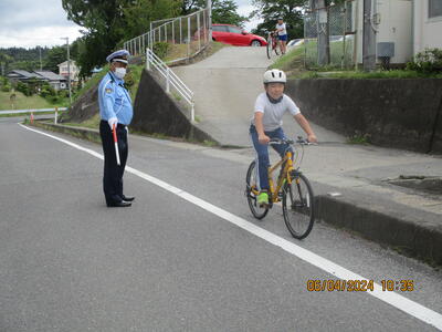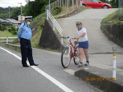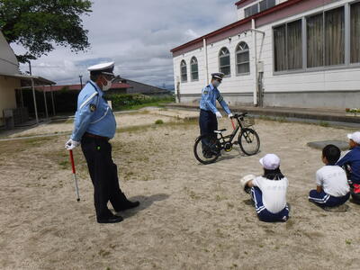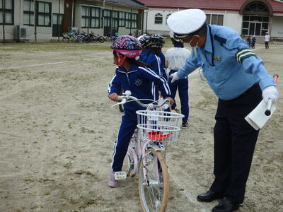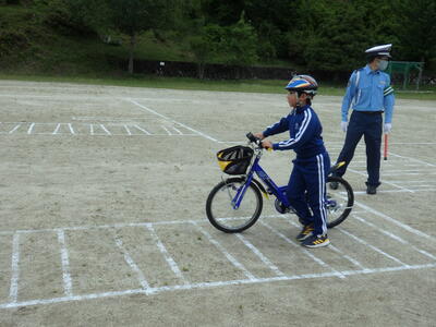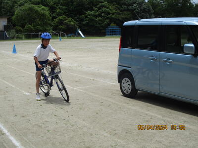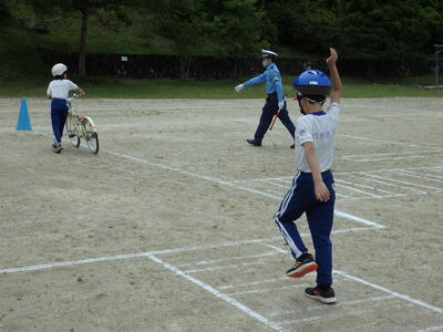 第2回目の交通教室は、1・2年生が「道路の正しい歩き方」、3年生~6年生が「自転車の正しい乗り方」について学びました。交通教育専門員の方々から具体的な指導をいただき、5・6年生は実際の道路も走行しました。