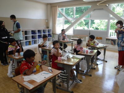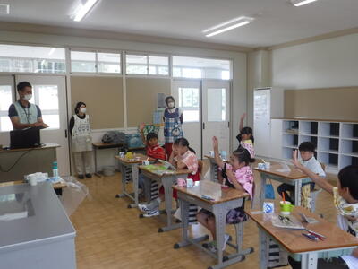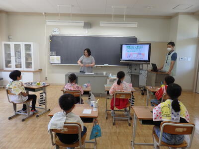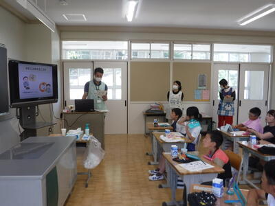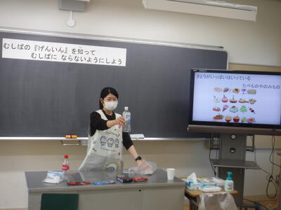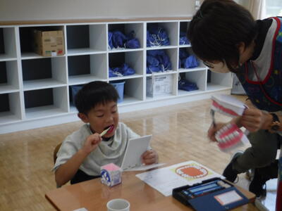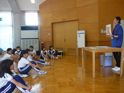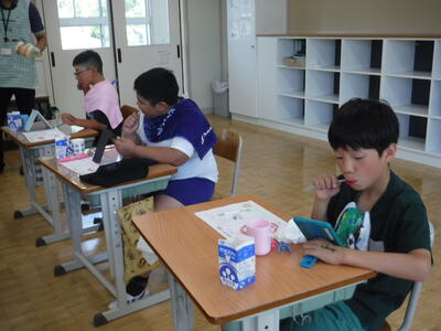 1年生から4年生までの児童が歯科教室を行いました。歯科衛生士さん、保健師さん、栄養士さんをお迎えし、むし歯になる原因について学んだり、正しいブラッシングの仕方を学んだりしました。