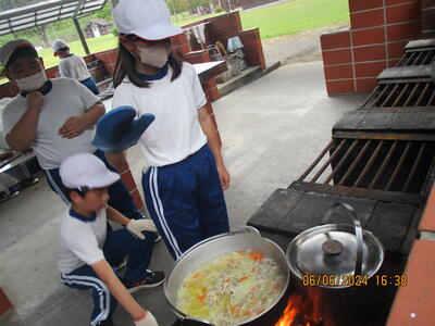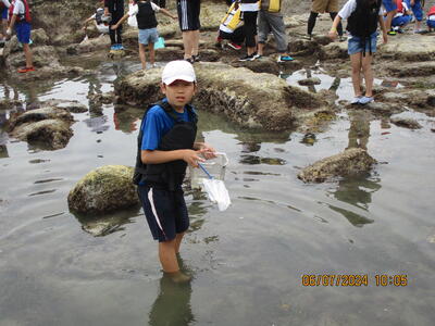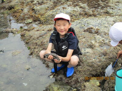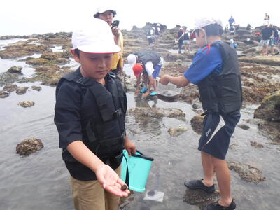 今年は、「福島県立いわき海浜少年自然の家」で宿泊学習を行いました。1日目には、ニュースポーツや野外炊飯、キャンプファイヤーなどに取り組み、2日目は磯遊びを行いました。