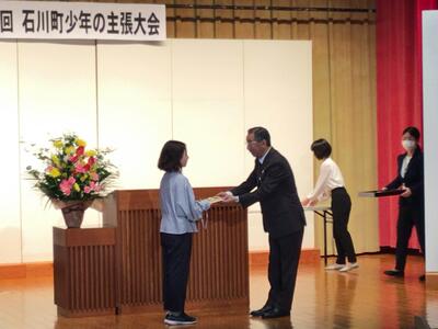 今年で第40回を迎える「石川町少年の主張大会」に、本校から6年生児童1名が参加しました。「猫の世界」の主題で、「猫の生きやすい世界について考えていきませんか。」と会場にうったえました。とても落ち着いた語り方で会場のみんなを引き込みました。