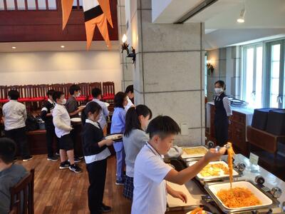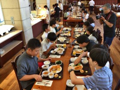 2024年6月20日 13時40分lunch.ナイフとフォークを使って、昼食をいただきました。