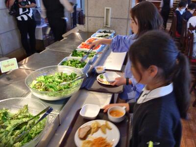 lunch.ナイフとフォークを使って、昼食をいただきました。