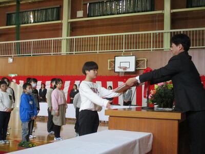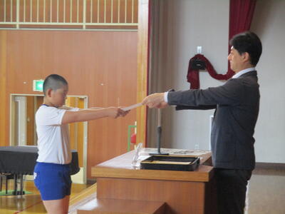 引き続き、石川町さくらロードレースに参加した児童へ、記録証の伝達が行われました。