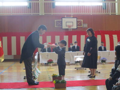 野木沢小学校としては最後の入学式となりました。来賓の方々をお迎えし、児童、職員が新入生を温かく迎えました。本年度の新入生は1名、校長先生から新しい教科書を受け取り、小学校生活のスタートを切りました。