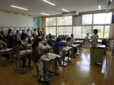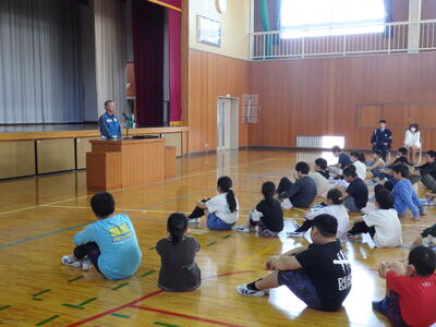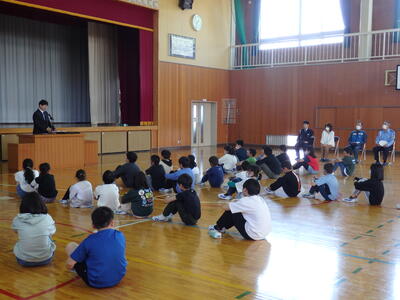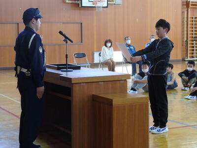 石川警察署員様、交通安全母の会会長様、交通安全協会野木沢分会長様からそれぞれお話をいただき、集団下校の際には交通教育専門委員の方から、登下校の仕方について具体的にご指導いただきました。6年生は家庭の交通安全推進委員を委嘱され、今年度交通安全に取り組んで行くことを誓いました。