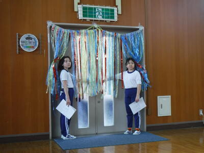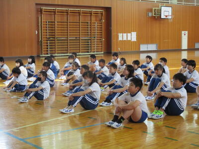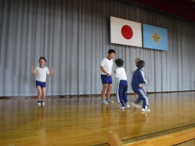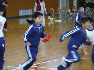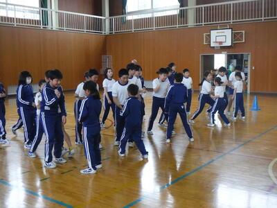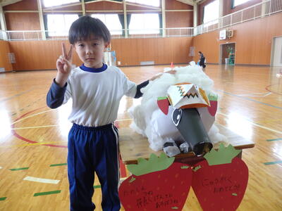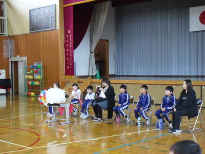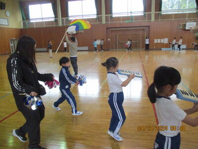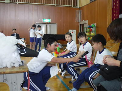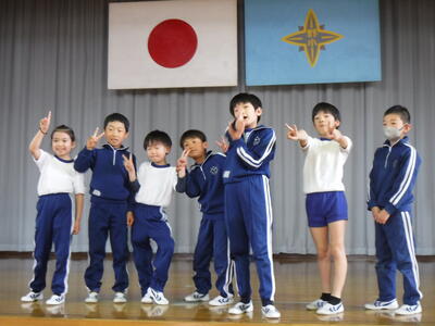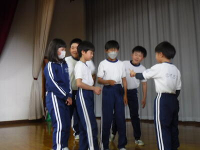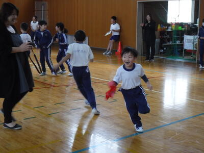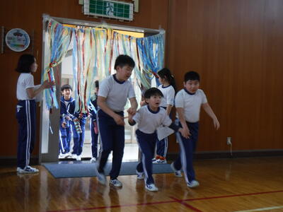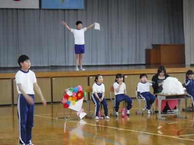 6年生の企画のもと、新入生を迎える会が行われました。新入生へのインタビューに始まり、「しっぽとりゲーム」や「王様じゃんけん」など、みんなで思い切り楽しみました。6年生からは、新入生が大好きなひつじもプレゼントされました。