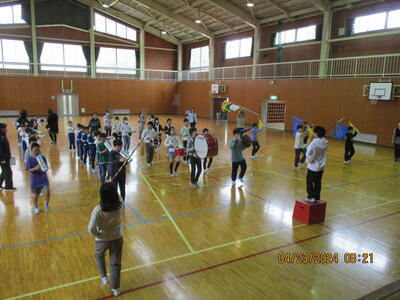 運動会に向けて、野木沢小学校鼓笛隊の全体練習が始まりました。新入生を加え、37名の鼓笛隊です。