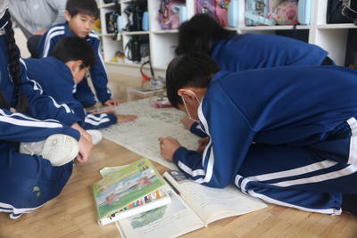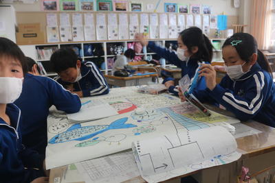 4年生の社会の授業では,福島県の「中通り・浜通り・会津」について,それぞれ調べたことを模造紙にまとめて発表の準備を進めていまた。
