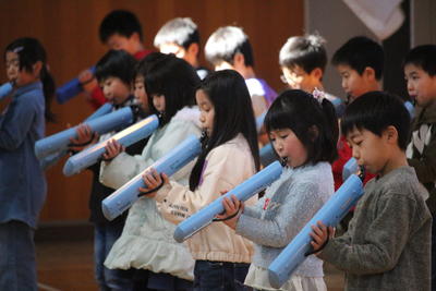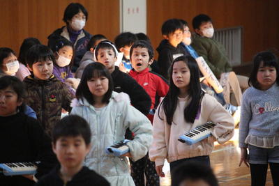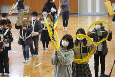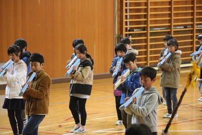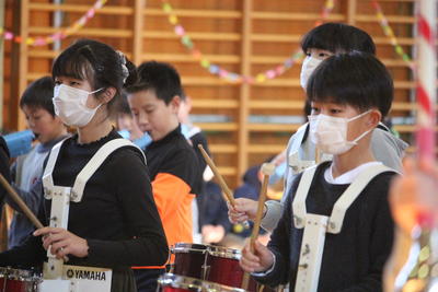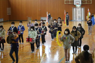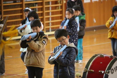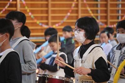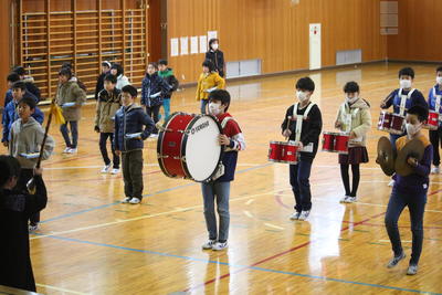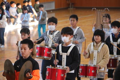 6年生の卒業を間近に控え,鼓笛隊の引継ぎの練習を毎日のように行っていますが,今日は3~5年生での全体練習が行われました。寒い体育館でしたが,みんな真剣に集中して取り組んでいました。