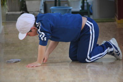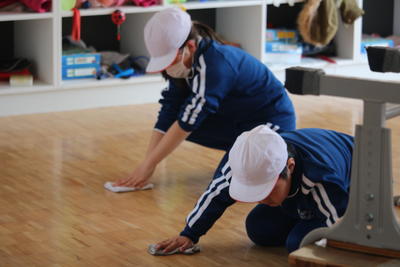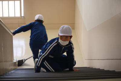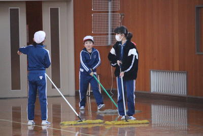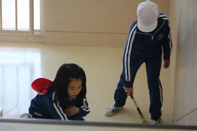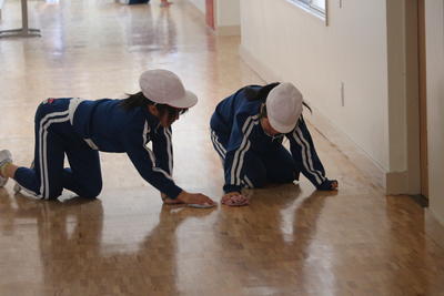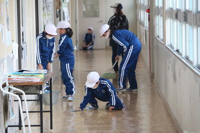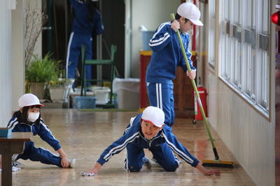 いよいよ来週は3月です。卒業式へ向けて清掃も重点的に行われ始めました。来週には廊下等のワックス塗り等もあるため水拭きが行われています。1年生から6年生までみんな一生懸命取り組んでいます。