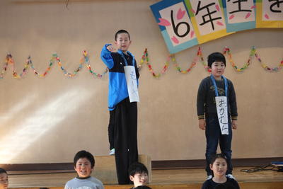 新型コロナウィルスの流行の影響で明日から臨時休校となってしまいますが,今日でお別れする6年生への感謝の気持ちを込めて「6年生を送る会」が行われました。これから最上級生となる5年生は,1~4年生の発表の手伝いや進行など裏方に徹して素晴らしい会にしてくれました。全校児童が一斉に顔を合わせる最後の機会となりましたが新学期からまた元気な顔を見せてくれることを祈っています。