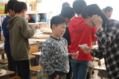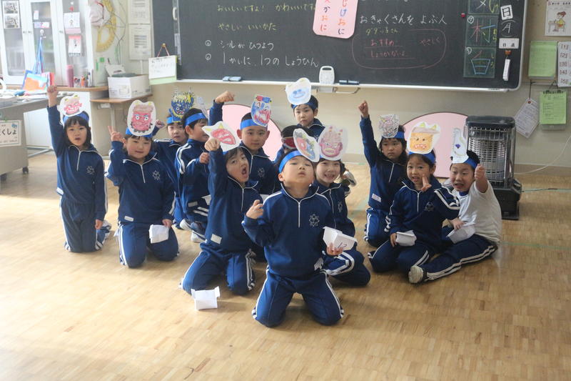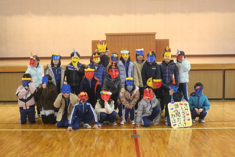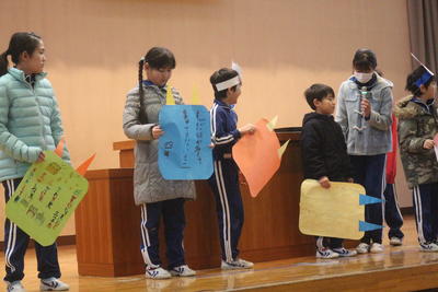 今日は節分です。朝の全校集会で学年ごとに話し合って,自分たちの学級から追い出したいにを発表しました。集会では,図工などの時間に作ったお面などをかぶって集会に参加した学年もありました。また,業間には年男年女が各学級をまわってまあめまきをしました。校長室や職員室にも来てくれて,大きな声で「鬼は~外」「福は~内」とかけ声をかけながら豆をまいていってくれました。そしてあしたは「立春」です。少しずつ春に近づいていきます。