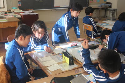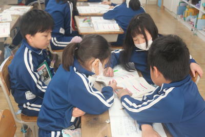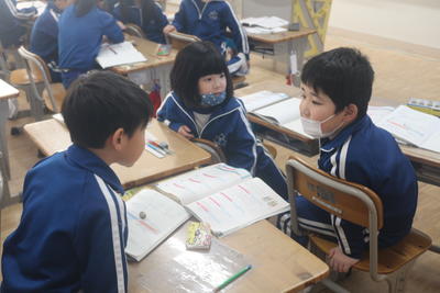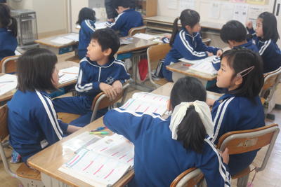 2年生の算数の授業では,課題に対して班で相談しながら解決に向けて一生懸命取り組んでいました。