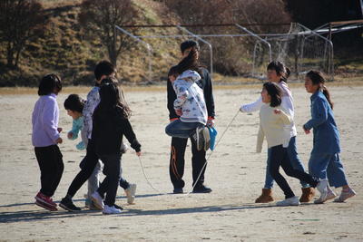 6年生は担任の先生とドッチボールでふれ合い。「わたしたちが楽しそうにしていることが先生の喜びだから」という理由だそうです。んふふ。