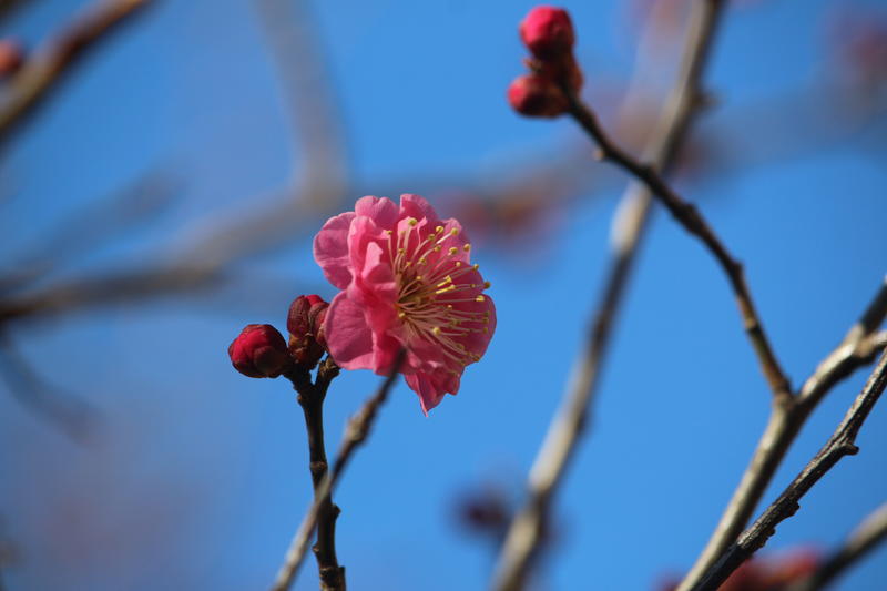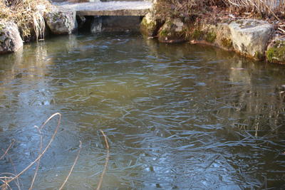 昨日「立春」を迎えましたが,はやくも校長室前の梅の花が3輪ほど咲いてました。一方で今朝,池の水の表面には氷が張っていました。
