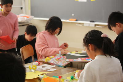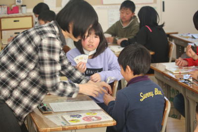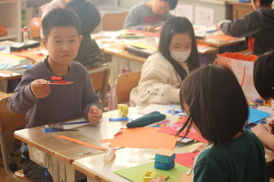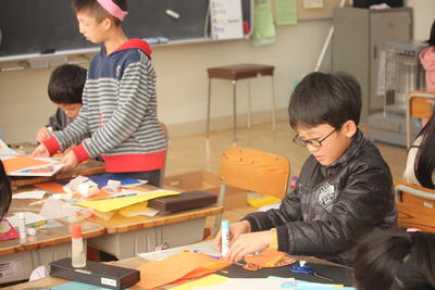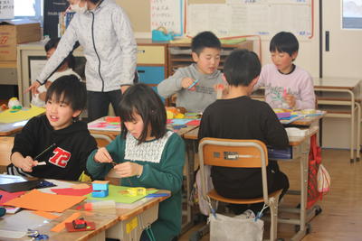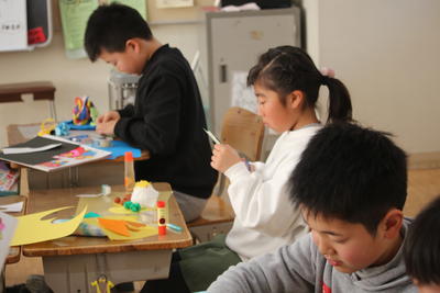 3年生の図工の授業では,いろいろな材料を使ってお弁当を作っていました。中には赤い折り紙をうまく使って,「いくらの軍艦巻き」を作っていた児童もいました。