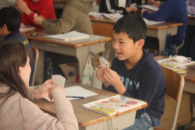 5年生の外国語活動では,ペアを作って互いに質問しあいながら会話の練習をしていました。