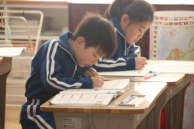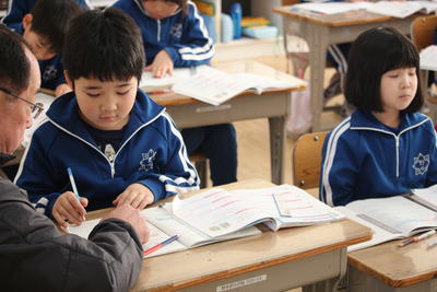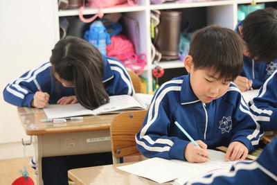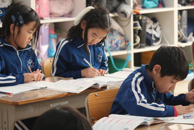 2年生は算数の授業でした。出題された問題を必死に解いていました。