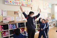 1年生はハイタッチでふれ合い。次はぼく!と勢いをつけてジャンプ!