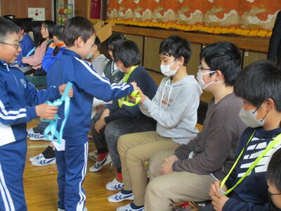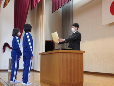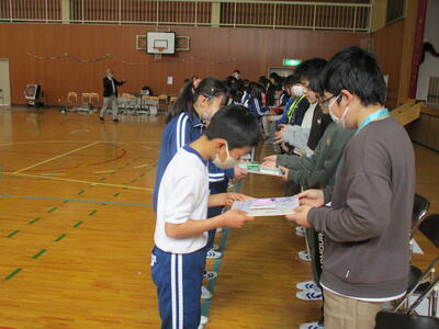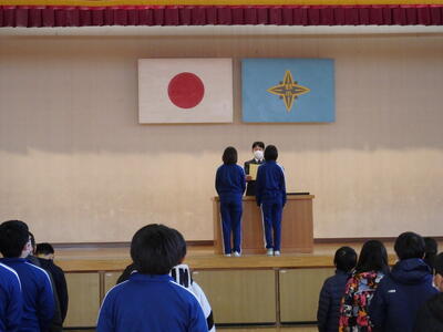 2月最後の全校集会が行われました。第68回福島県書きぞめ展で特選となった児童の名前が紹介され、6年生が代表で賞状を授与されました。野木沢小学校は、奨励学校賞をいただきました。