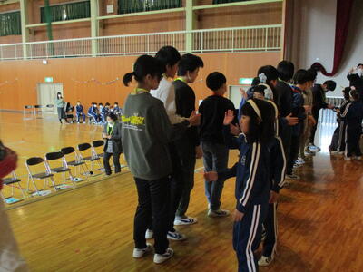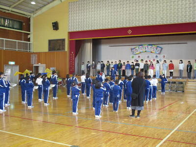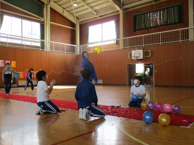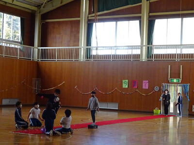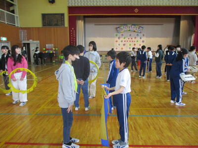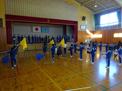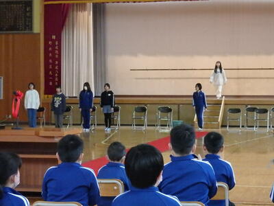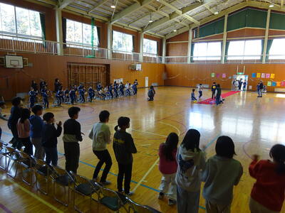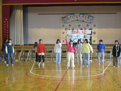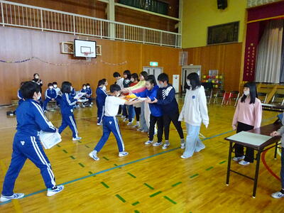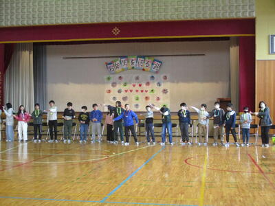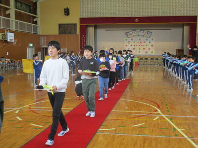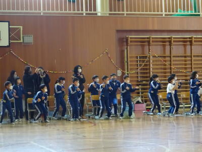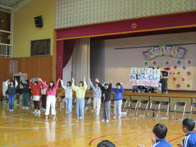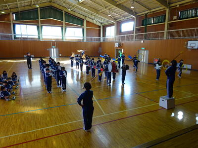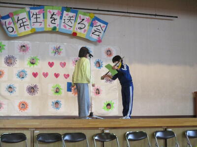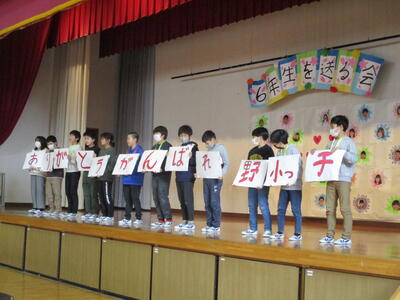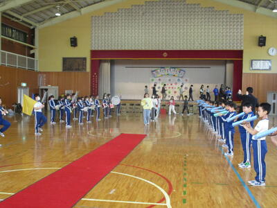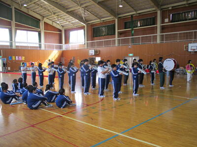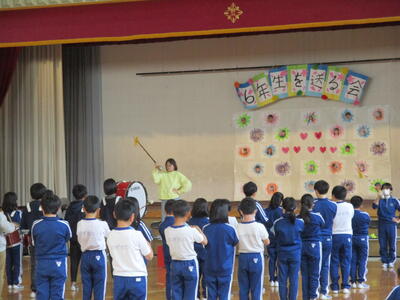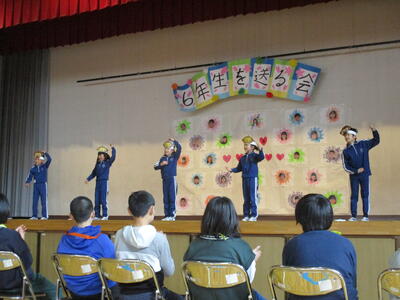 6年生を送る会が行われ、鼓笛隊も新体制に移行しました。在校生は、これまでお世話になった6年生に感謝の気持ちを表しました。6年生に楽しんでもらうために、クイズ、ゲーム、歌やダンスなどそれぞれに工夫を凝らしてもてなしました。6年生からは、ダンスとフリップで感謝のメッセージが伝えられました。