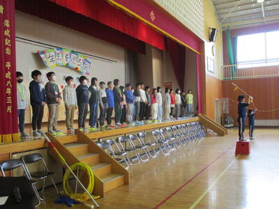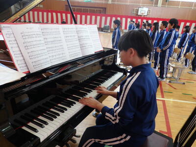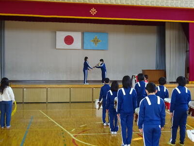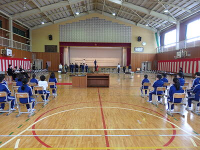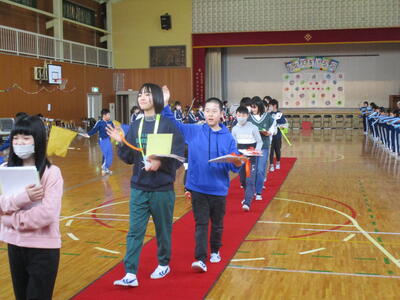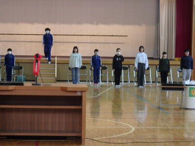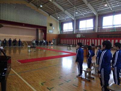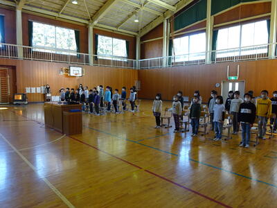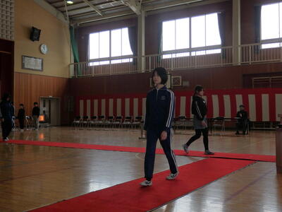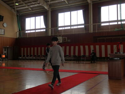 本日、第1回目の卒業式練習を行いました。教務主任の指導のもと、姿勢、礼、式歌、門出の言葉などについて確認しました。初めて卒業生と在校生が向かい合い、お互い緊張の面持ちでしたが、それぞれが学級での練習成果を十分に発揮していました。