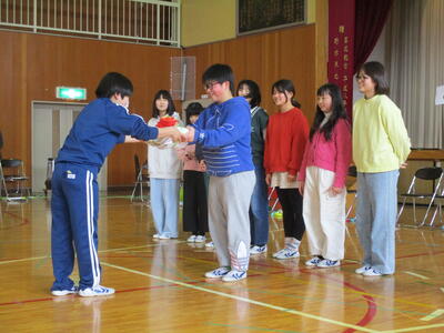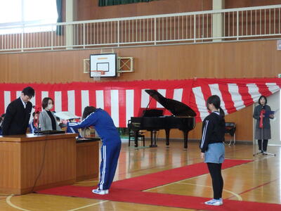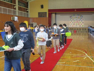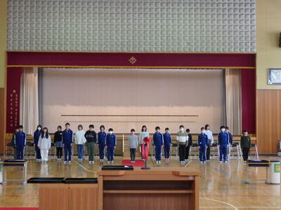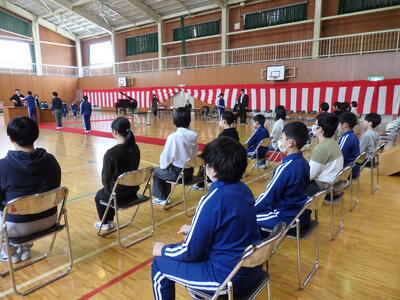 先週末、卒業式予行を行いました。卒業証書授与、門出の言葉、入退場など、一連流れを確認しました。卒業生は、緊張の中、証書授与の所作や式歌などこれまでの練習成果をしっかりと発揮していました。在校生は、感謝の気持ちを伝えようと、門出の言葉を心を込めて言うことができました。卒業生を送る拍手もにも、感謝の気持ちがあらわれていました。