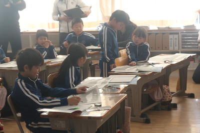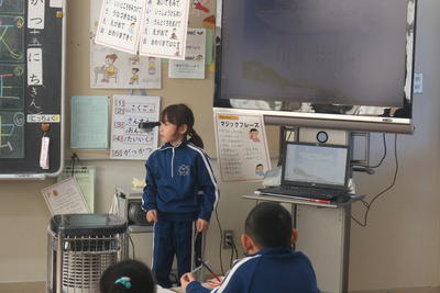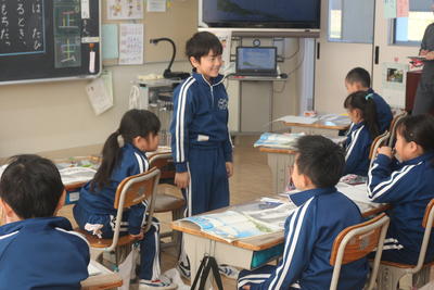 1年生の国語の研究授業が行われました。校内の多くの先生方に授業の様子を見られて子ども達はだいぶ緊張していたようですが,がんばって発言したりしていました。