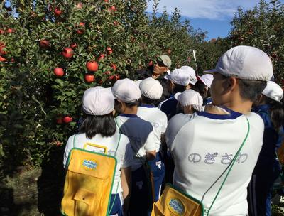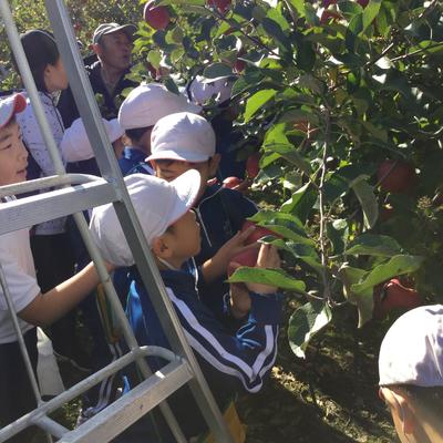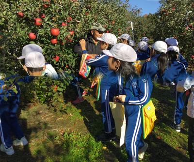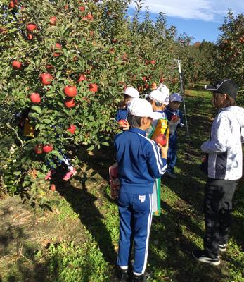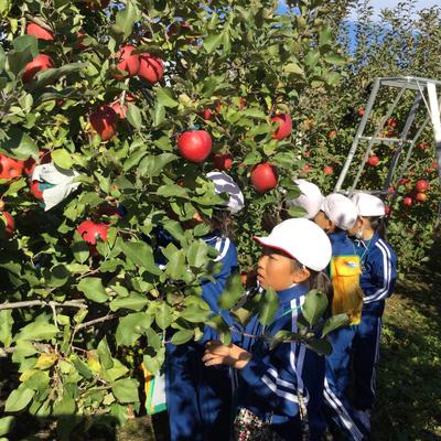 3年生は,1校時目からリンゴでお世話になっている農家さんへ収穫作業のため出かけてきましした。最初に収穫について説明を聞いた後,いよいよ収穫作業を行いました。みんなで協力して高いところにあるリンゴも収穫できました。コンテナ11個分ものリンゴが収穫できたし,おうちへのお土産も持ちました。収穫したリンゴは今後の給食などでいただきます。リンゴ農家さんありがとうございました。この後,収穫したリンゴの木の剪定などの作業がありますが,がんばります。