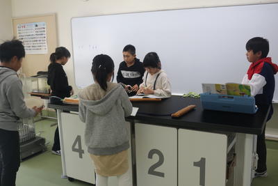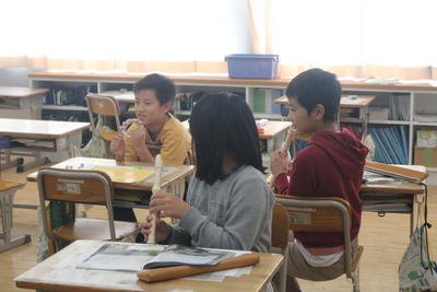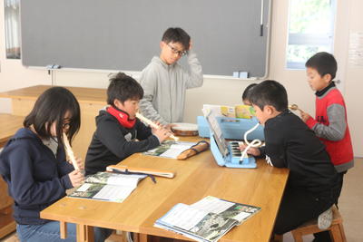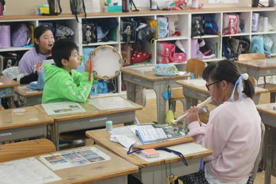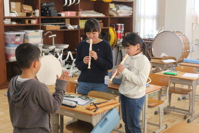 5年生の音楽では,グループに分かれて「風とケーナのロマンス」という曲の練習をしていました。