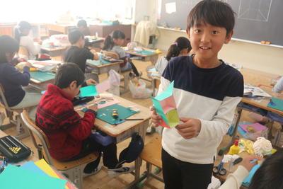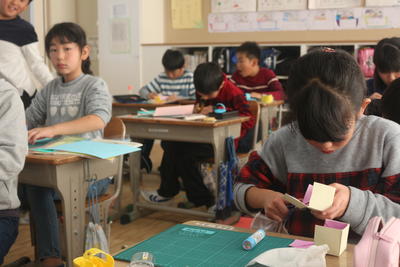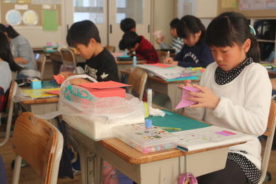今日の4年生の図工の授業は,パステルペーパーを使って「おり箱を作って,組み合わせを工夫して作ろう」でした。何ができるかは児童達の発想にかかっています。楽しみです。