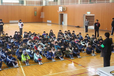 2019年11月22日 11時33分本日,不審者が校舎内に入ってきたという想定で「防犯避難訓練」行われました。その後,体育館で「いかのおすし」の確認や大声を出してみたり,不審者に出会ったときを想定してのロールプレイなど学習しました。大阪の池田小学校での事件から20年近くたちますが,もしもの時に備えて実施しました。