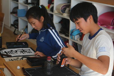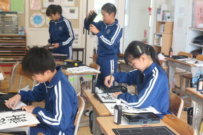 6年生の書写の授業では「感謝」の文字に取り組んでいました。