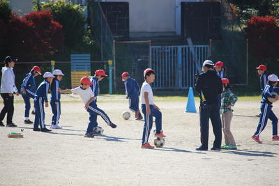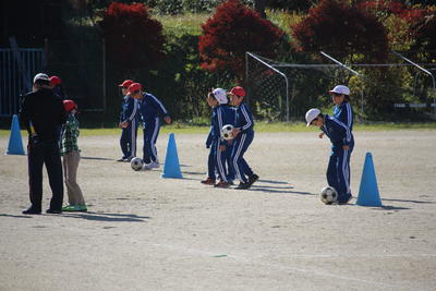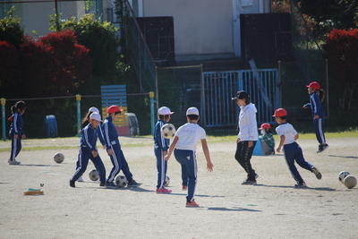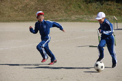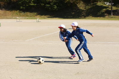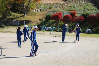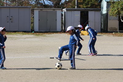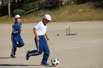 3年生に引き続き,4年生も校庭で体育の授業でした。3年生と同じくボ-ルを使っての運動でした。ペアでのサッカー競技につながるような運動でした。