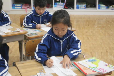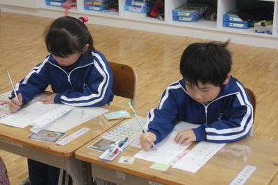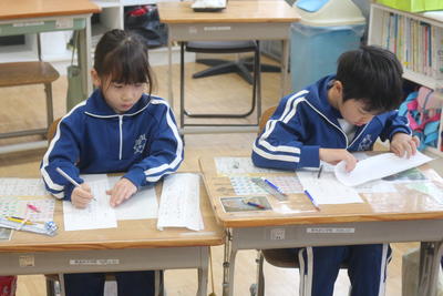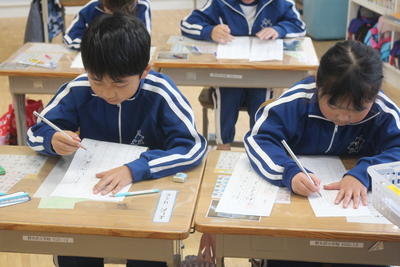 硬筆での書写の授業の様子です。みんな真剣です。
