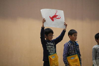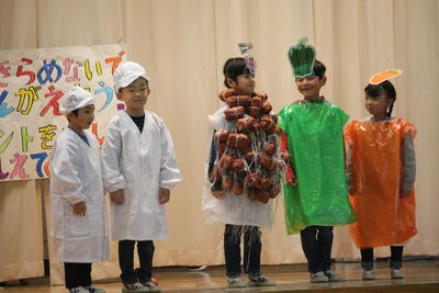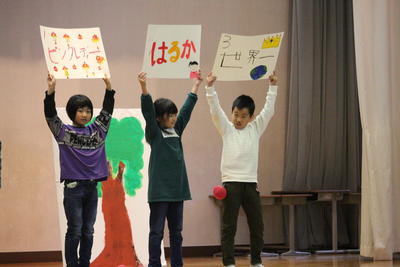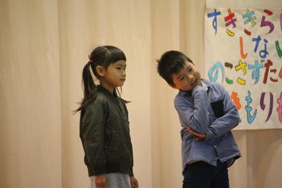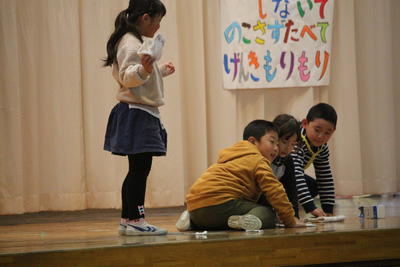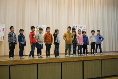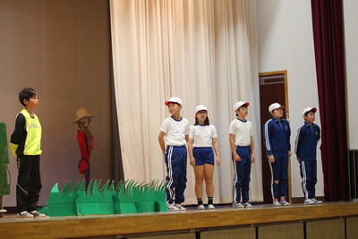 1年生は13人が協力して「スーパー1年生」になるためのポイントを見つける劇を演じました。