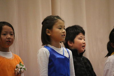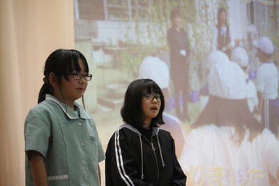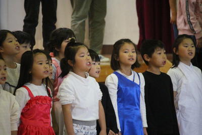 いよいよ野小フェスティバルの開幕です。まずは,1年生の元気いっぱいの開会の言葉です。