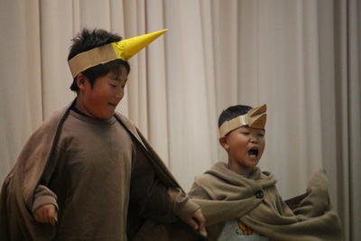 2年生は,みんなで「古事記」の劇に挑戦しました。元気いっぱいのパフォーマンスを披露してくれました。