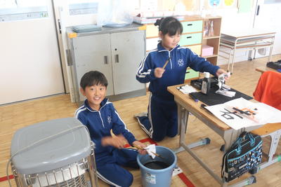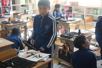 4年生の書写の授業の様子です。片付け始まっている児童も多くいました。