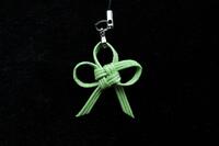 先日、学校に来られた方から、クラフトバンドで作った黄緑色のリボンをいただきました。