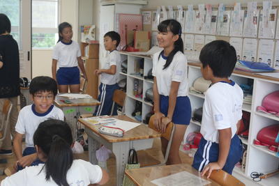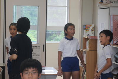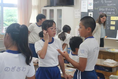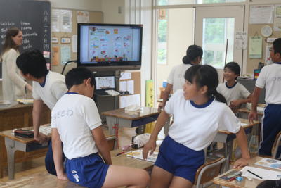 6年生の外国語では「夏休みに食べたもの」を英語で表現しあっていました。