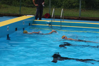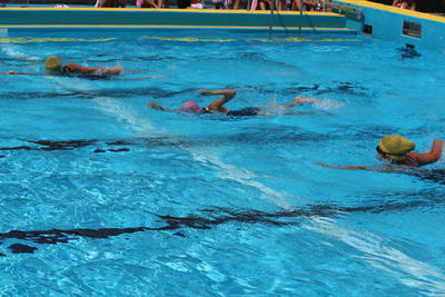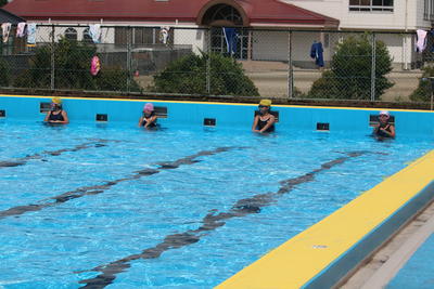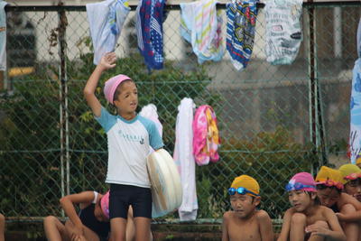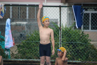 水泳記録会(中学年) 2019年8月29日 11時20分 中学年も実施が危ぶまれた水泳記録会でしたが,後半は太陽が顔を出し気温も急上昇しコンディション良好の中で無事終了しました。1mでも遠くへ1秒でも早く泳ごうとみんな全力でがんばりました。どちらの学年にも新記録が出ました。